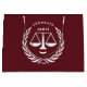 Anwalt Gratulationen Geschenktasche mit kreativen Waagen der Gerechtigkeit. Bearbeiten Sie den Text, um den Namen und das Jahr hinzuzufügen oder auf andere Weise für den Abschluss von Jurastudien, Geburtstags- oder Anwaltskanzleien anzupassen.