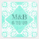 Personalisierte Aquamarine Hochzeitdatum und Ersta Quadratischer Aufkleber