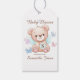 Feiern Sie die Mama-to-be mit einem niedlichen Bären und Schmetterlinge personalisierten Baby Dusche Geschenk Tag. Auf der Vorderseite finden Sie den besonderen Veranstaltungsnamen, den Namen der Mutter-zu-sein sowie ihr Monogramm. Die Rückseite ist blau. Verwenden Sie die Vorlage zum Personalisieren.