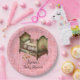 Eine hübsche, rosafarbene Baby-Dusche, runde Papierplatte zum Abendessen, die für die Mutter individuell gestaltet werden kann