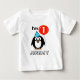Personalisierte Babys 1. Geburtstag Shirt für ein Jahr alt Kleinkind. Fantastischer Pinguin Cartoon mit rotem Ballon und Party Hut. Personalisierbarer Name und Altersnummer. Niedliches Design für das 1. Geburtstag Party. Erste Geschenkidee zum Geburtstag.