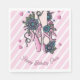 Hübsche Ballettschuhe für Ihre kleine Ballerina mit Blume und Perlen. Ein rosa und weiß gestreifter Hintergrund rundet das Ensemble ab. Kann personalisiert sein.