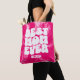Groovy Retro Typografie, die "Beste Mutter je" auf rosa gefärbte Krawatte Hintergrund sagt. leicht mit Namen personalisiert.