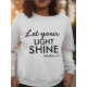 Dieses strahlende Frauenpullover, inspiriert von der mächtigen Schrift Matthew 5:16. Eingetönt mit der aufhellenden Botschaft "Lass dein Licht", wurde inspiriert und hochgehoben. Wenn Sie dieses Sweatshirt tragen, erlauben Sie es, ein Leuchtfeuer der Hoffnung zu sein, das die Liebe und Güte Gottes widerspiegelt. Lass dein Licht hell leuchten, das Leben erhellt und andere inspiriere, im Glauben zu gehen.