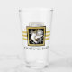 Das Design ist mit einem Eis-Skate über einem Schneeflocken-Wappen mit schwarzem und Imitat goldenem Glitzer-Hintergrund ausgestattet. Dieses elegante Wintersportdesign dient als cooler, moderner und einzigartiger Glashüpfer mit personalisiertem Text.