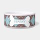 Diese Keramik Hundefutter Schüssel hat eine blaue, graue und weiße Raute im Hintergrund. In der Mitte befindet sich ein großer weißer Knochen mit einem leicht anpassbaren Namen Ihres Hundes in blau geschrieben.