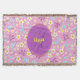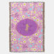niedliche Babymotive werfen Decken. Plumeria-Blume mit Bogen und Blasen auf pastellfarbenem lila Hintergrund. Drücken Sie auf den personalisierenden Knopf, um dem Baby den Initial und den Namen hinzuzufügen.