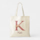 Elegantes personalisiertes Blumenmonogramm mit dem Buchstaben K, verziert mit schönen rosa Rosen. Benutzerdefinierter Name 'Kyla' in eleganter Schrift darunter. Dieses feminine und romantische Design ist perfekt für den täglichen Gebrauch oder als durchdachtes personalisiertes Geschenk für Geburtstage, Brautjungfern oder besondere Anlässe. Hochwertige Canvas-Tote-Bag.