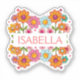 Ein niedlicher Aufkleber, der auf Ihrem Ordner, Notebook, Tablette oder Wasserflasche befestigt werden kann und mit einem Namen personalisiert werden kann. Es ist mit hübschen rosa, orangefarbenen und blauen Blumen und einem kahlem Ambiente dekoriert.