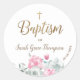 Moderne und elegante Blume mit Aquarellmalereien und bedruckter Goldtaufe und -kreuz ist dieser Taufsticker leicht zu personalisieren. Benutzen Sie diesen Aufkleber für Geschenke, Geschenke, für die Gäste Ihres Kindes.