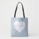 Niedliche Personalisierte Bräunungstasche mit Herzform, modernem Drehbuch und individuelle Name auf farbig bearbeitbarem staubblauen Hintergrund, großartige Hochzeitsgeschenke.