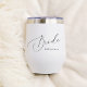 Maßgeschneiderter Trauweintumbler für die Braut bietet "Braut" in eleganter, klassischer Kalligraphie-Schrift Typografie mit Ihren Initialen und Hochzeitstermin unten.