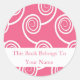 Personalisierte Buchzeichen - weißer Swirbel auf r Runder Aufkleber