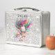 Personalisierte bunte Einhorn Lunchbox mit Glitter
