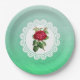 Personalisierte Lime Green Burgund Vintage Rose Paper Teller für Blumenduschen, Hochzeiten oder Geburtstage.
