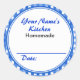 Diese personalisierten Konservenaufkleber passen auf die Glaskonfitüre, die Gelee und die Konservendeckeln. Sie haben ein Bild eines blauen, karierten Grenzmusters. Die runden Dosendeckeln sagen: "Your Name's Kitchen Homemade" und Sie können Ihren Namen in der Vorlage zu personalisieren. Es gibt eine Zeile für das Produkt, das Sie gemacht haben, die Sie später schreiben können. Die runden Aufkleber sagen auch "Datum", und Sie können später in das Konservendatum schreiben. Sie können Schriftart, Stil oder Farbe ändern, um sie anzupassen. Fügen Sie diese speziellen Konservenetiketten zu Ihren hausgemachten Beilagen, Verspannungen, Konfitüren, Konserven, Gelees und anderen Küchengeschenken hinzu. Ihre Lieben werden die köstlichen Leckereien, die Sie selbst gemacht haben, schätzen.