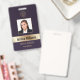 Dieses berufliche luxuriöse Foto ID Abzeichen im lila und goldenen Stil wird einfach mit Ihren individuellen Details personalisiert.
