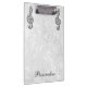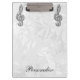 Elegantes, bezauberndes personalisiertes Klemmbrett. Schön, Blendungstrendy Druckbildsilber und die Glitterdiamanten, die musikalische Anmerkung der Juwelen über einen Chicweißen Blumendamast bling sind, kopieren Sie Hintergrund. Ein niedliches, nobles, modernes, stilvolles, hübsches Geschenk für sie oder irgendein Musikliebhaber. Frauen und Mädchen sind Liebe dieser hübsche Fall gewillt.