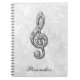 Elegantes, bezauberndes personalisiertes Notizbuch. Schön, Blendungstrendy Druckbildsilber und die Glitterdiamanten, die musikalische Anmerkung der Juwelen über einen Chicweißen Blumendamast bling sind, kopieren Sie Hintergrund. Ein niedliches, nobles, modernes, stilvolles, hübsches Geschenk für sie oder irgendein Musikliebhaber. Frauen und Mädchen sind Liebe dieser hübsche Fall gewillt.