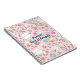 Personalisiertes Blumennotizbuch mit spiralgebundenen Seiten. Fügen Sie einen Titel in tealblauer Schrift über eine ganze Seite mit ditsy, mehrfarbigen, handgezeichneten Blumen auf einem rosafarbenen Hintergrund hinzu. Keine KI oder gekaufte Elemente. Das Design springt vom Cover. Perfekt, um es für jede Frau, mit jedem Titel, für jeden Anlass anzupassen. Pastellblumen sind rosa, korallenorange, blau, weißliche und grüne Stiele.