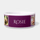 Personalisierte Hundefutter Schüssel, der Sie Fotos und Ihren Hundenamen hinzufügen. Wählen Sie einfach die Option Personalisieren, um die Felder zu aktualisieren. Die Hintergrundfarbe kann mit der Option Anpassen geändert werden. 203-302-0337 HAMbyWhiteGlove. In Amethyst gezeigt.