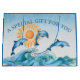 Geschenke zu geben war nie so einfach! Dieser große, glänzende Geschenksack ist leicht mit Ihrer eigenen Nachricht personalisiert (aktuell steht: A SPECIAL GIFT FOR YOU) und verfügt über drei frosende Delphine in den Ozeanwellen und eine goldene Sonne dahinter.