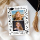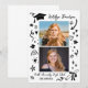 Feiern Sie Ihren Abschluss mit dieser personalisierten Abschluss-Fotoankündigungskarte mit einer lustigen, verspielten handgezeichneten Doodle-Umrandung in einem sauberen, modernen Stil. Die spielerischen Skizzen umfassen eine Abschlussmütze, Sterne, Glitzer, Herzen, kleine Blumen, lockige Schnörkel und ein gerolltes Diplom, das mit einer Schleife für eine fröhliche Abschlussstimmung gebunden ist. Passen Sie den Namen des Absolventen, die Schule und das Abschlussjahr an, um eine einzigartige Ankündigung zu erstellen.