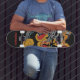Personalisiertes asiatisches Drachenskateboard mit dem Namen in einem roten Sans Serif. Fett rot orange und schwarz.