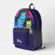 Hübscher, skurriler, lila Rucksack, mit lustiger Grafik eines Trios Katzen. Personalisieren Sie den weißen Text, um Ihre Bedürfnisse zu Anzug. Eine tolle Geschenkidee für sie.