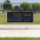 Eine personalisierte dünne blaue Linie symbolischer USA-Flaggenentwurf auf einer handlichen Anzeigenfahne. Eine große Dekoridee für Ansammlungen, Erinnerungsfeiern und Erinnerungsgelegenheiten.