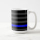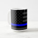 Eine dünne blaue Linie grafische große Tasse des symbolischen Grau US-Flaggenentwurfs. Eine große Geschenkidee für Ansammlungen, Erinnerungsfeiern und Erinnerungsgelegenheiten. Personifizieren Sie sie mit Ihrem Text.