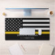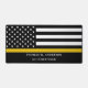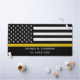 Thin Gold Line Dispatcher Desk Mat - Amerikanische Flagge in Dispatcher Flag Farben, modernes Schwarz und Gold Design. Personalisieren Sie Ihre Daten mit dem Namen des Absenders. Diese personalisierte Schreibtischmatte ist ideal für Polizeidienststellen und Strafverfolgungsbeamte. COPYRIGHT © 2020 Judy Burrows, Black Dog Art - Alle Rechte vorbehalten. Dispatcher für Personalisierte dünne goldene Leine