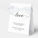 Personalisiert diese Gunst-Kisten mit den Namen der Braut und des Bräutigams, besondere Nachricht und Hochzeitstag. Elegant, einfach und chic mit in einem moderner Skript-Schriftart für das Wort, dass es alles "Liebe" sagt. (siehe andere Optionen für die Bugfarbe).