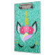 Personalisierte Einhornklapptafel für Aquamarinen Klemmbrett