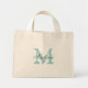 Personalisierte elegante aquamarine Monogramm kleine Mini Tote Tasche. Klassisches Template-Design mit Skripttypografie und Vintagem Anfangsbuchstaben. Benutzerdefinierte Leinwand-Tasche.