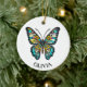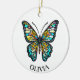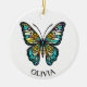 Personalisierte Weihnachtsschmuck mit einem Schmetterling auf der Vorderseite und einer persönlichen Nachricht auf der Rückseite.