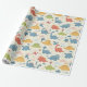 Dieses spielerische Packpapier enthält farbenfrohe, skurrile Dinosaurier in lustigen Posen.