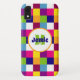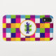 Dieses Handy Gehäuse hat ein buntes Muster von Quadraten/Böcken in hellgelb, navy, grün, rosa, blau, lila, orange, bordeauxfarben und weiß. Passen Sie den weißen und orangefarbenen Kreis mit Ihrem Namen, Ihren Initialen, Monogrammen oder anderen Formulierungen an. Machen Sie den Kreis und nennen Sie ihn so groß oder klein, wie Sie wollen, oder entfernen Sie ihn ganz.