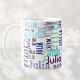 Personalisierte Farbtöne blauer Typografie Kaffeetasse