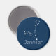 Personalisierte Fische Zodiac Constellation Magnet. Mit seiner Konstellation auf einem Navy-Background macht dieser Personalisierte Fiszenzauber ein perfektes Geburtstagsgeschenk für alle Fische. Hintergrundfarbe und Text können angepasst werden