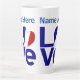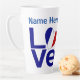 Diese personalisierte große, latte Tasse enthält das Wort "LIEBE" in blauen Buchstaben, mit einer herzförmigen französischen Flagge als "O". Design zeigt auf zwei Seiten der Tasse. Es ist ein großartiges Geschenk für Vatertag, Muttertag oder Feierlichkeiten zum Bastille-Tag. Ideal für Wiedersehen und Freunde, es macht auch ein cooles Weihnachtsgeschenk oder Hanukkah.