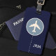 Ein elegantes Objekt mit dem grafischen Bild eines weißen Flugzeugs in einem Kreis, auf marineblau (benutzerdefinierte Farbe) Hintergrund personalisiert mit Ihren Initialen... um Ihre Sachen zu identifizieren. Ein Gepäckanhänger mit einem Namen ist für die Reise aus mehreren praktischen Gründen wichtig. Erstens dient es als eine schnelle und einfache Möglichkeit, Ihr Gepäck am Meer ähnlicher Gepäckstücke an Flughäfen, Busstationen oder anderen Verkehrsknotenpunkten zu identifizieren. Dies rette Ihnen Zeit und reduziert das Risiko, versehentlich die Tasche eines anderen mitzunehmen oder einen anderen mitzunehmen. Zweitens bietet ein Gepäckanhänger mit Ihrem Namen einen wichtigen Kontaktlink für den Fall, dass Ihre Tasche verloren geht. Im unglücklichen Fall, dass Ihr Gepäck während Ihrer Reise fehl am Platz ist, wird es für das Personal von Fluggesellschaften und Transportunternehmen durch den Namen und die Kontaktdaten des Gepäcks wesentlich einfacher, Sie mit Ihrem Gepäck zu vereinen. Diese einfache Maßnahme erhöht die Wahrscheinlichkeit eines schnellen und präzisen Abrufprozesses.