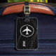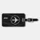 Ein elegantes Objekt mit dem grafischen Bild eines weißen Flugzeugs in einem Kreis, auf schwarzem (benutzerdefiniertem) Hintergrund personalisiert mit Ihren eigenen Initialen... um Ihre Sachen zu identifizieren.