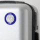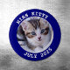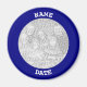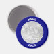 Erstellen Sie Ihren eigenen Foto-Magneten mit einem marineblau blauen Rand und weißem gebogenem Text.