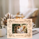 Dieser wunderschön geätzte Holzrahmen enthält oben die Namen "Selena & Michael" und unten das Hochzeitsdatum "25. JULI 2025". Die aufwändigen Blumenkonstruktionen und Zierbilder rund um den Rahmen verleihen ihm einen klassischen, eleganten Look. Der 4 x 6 cm große Raum in der Mitte ermöglicht es, ein hochgeschätztes Foto vom Hochzeitstag des Paares zu zeigen, was es zu einem personalisierten Vergnügen macht, an seinen besondere Anlass zu erinnern.