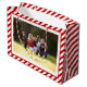 Personalisiert Frohe Weihnachten rot-weiße diagonale Streifen Foto Geschenktasche. Fotografie © Storytree Studios, Stanford, CA