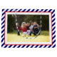 Personalisiert Frohe Weihnachtsblau und weiße diagonale Streifen Foto Geschenktasche. Fotografie © Storytree Studios, Stanford, CA