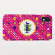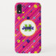 Diese Gehäuse-Abdeckung aus heiß rosa Zellen weist farbenfrohe Muster zufälliger Kreise auf, die durch diagonale gestrichelte Linien in hellgelb, orange, lila, grün, bordeauxrot, navy, hellblau und weiß überlagert werden. Passen Sie den weißen und orangefarbenen Kreis mit Ihrem Namen, Ihren Initialen, Monogrammen oder anderen Formulierungen an. Machen Sie den Kreis und nennen Sie ihn so groß oder klein, wie Sie wollen, oder entfernen Sie ihn ganz.