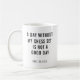 Eine großartige Tasse für einen Schachspieler. Die moderne schwarze Typografie enthält einen Gag, der sagt: "Ein Tag ohne mein Schach ist kein guter Tag". Einen Namen hinzufügen, indem Sie auf den Link "Personalisieren" oben klicken