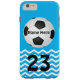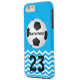 Super niedliche Fußball-Geschenk-Ideen. Personalisiertes Zickzack Fußball iPhone 6 PlusHüllen für Mädchen (oder älter zum neuesten iPhone Fußbalfall) mit ihrem NAMEN und ZAHL schrieb in einfache Textkasten-Vorlagen auf Ihrem Recht. Klicken Sie "mehr" an, um die zwei Textboxen zu sehen. Ändern Sie den blauen Türkishintergrund und weißen die Text FARBEN zu Ihren Team-Farben. Sehen Sie Anweisungen unten, die Text- und Türkisblau FARBEN zu ändern oder um HILFE zu rufen: 239-949-9090
